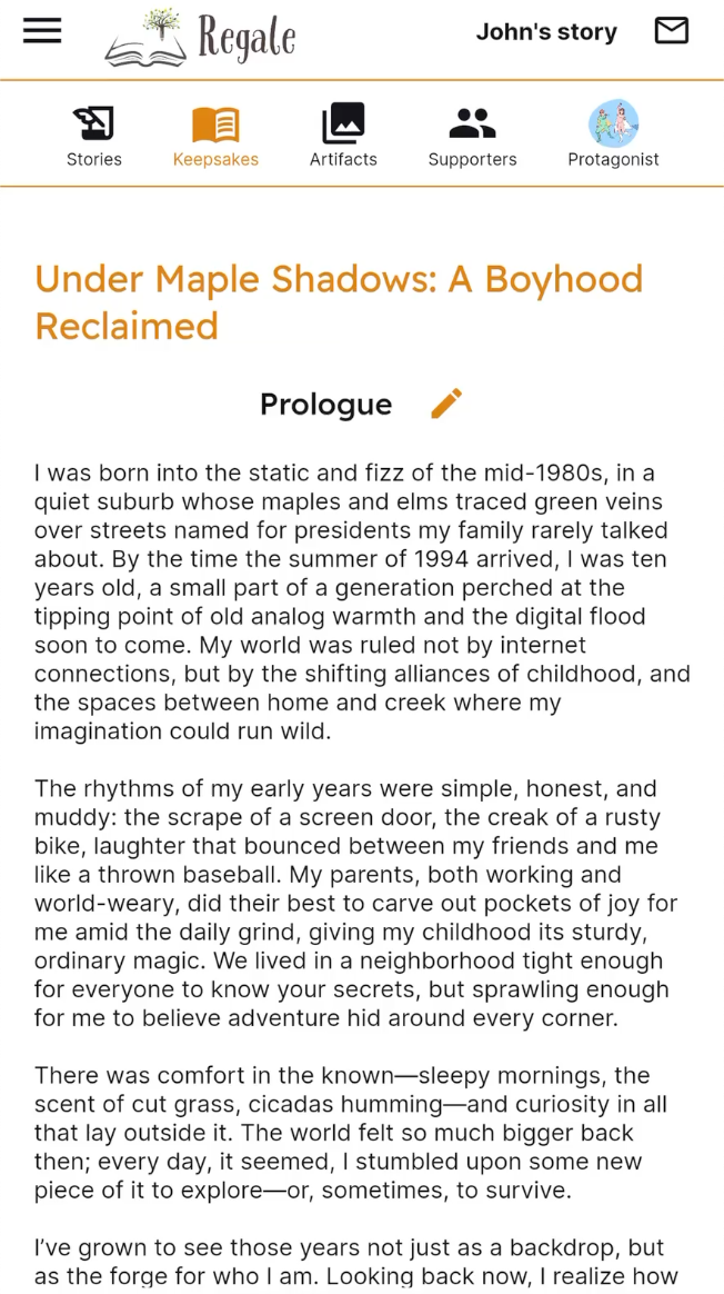 Once you have completed at least one interview, you can go to the Keepsake section and generate an eBook version of your memoir or biography.